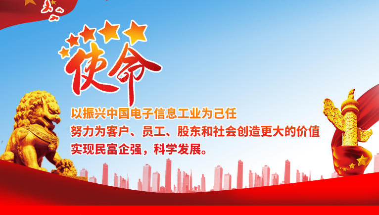 以振興中國電子信息工業(yè)為己任,努力為客戶、員工、股東和社會創(chuàng)造更大的價值,實現(xiàn)民富企強,科學發(fā)展。