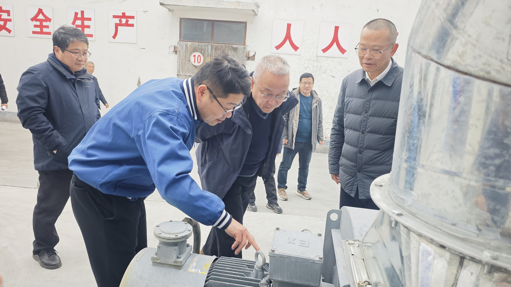 謝永明一行來到電容器分公司交流一線噴金工序外部專用收塵設(shè)施,認真了解裝置運行和安全報警系統(tǒng)、應(yīng)急救援設(shè)施、靜電防護等安全設(shè)施運行維護情況,并聽取公司領(lǐng)導(dǎo)和有關(guān)負責人關(guān)于安全環(huán)保措施落實、隱患排查治理等情況的匯報。