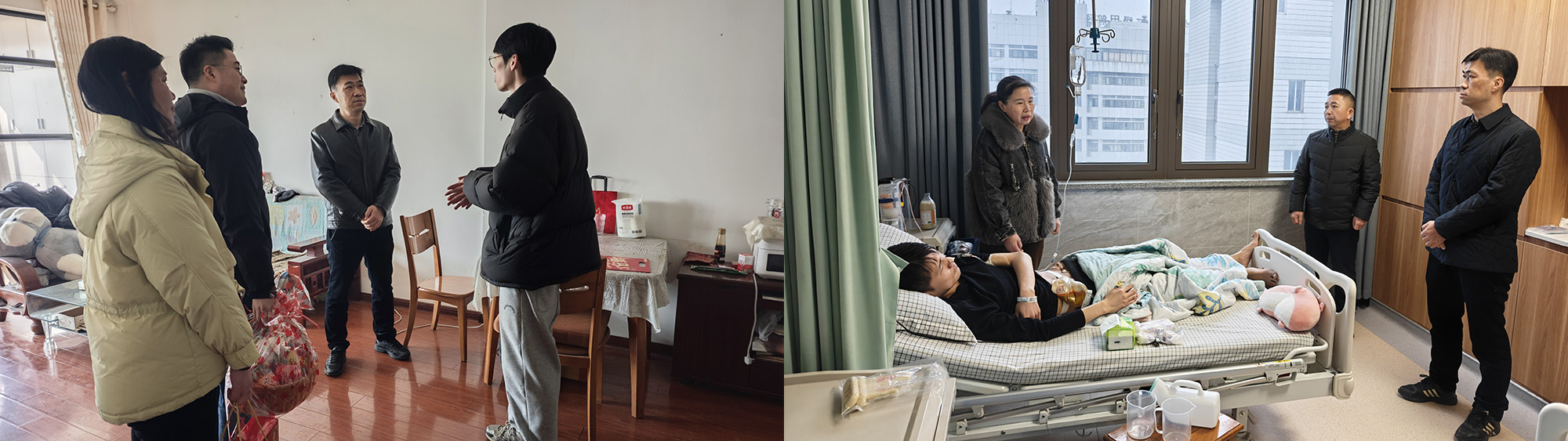 在醫(yī)院病房,公司領(lǐng)導(dǎo)還看望患病住院的困難職工,并送上慰問金。公司領(lǐng)導(dǎo)關(guān)切詢問患者的病情、治療進展以及目前身體狀況,叮囑患者要安心養(yǎng)病,放寬心態(tài),積極配合治療,爭取早日康復(fù)。